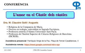 10:15 – Conferència «l’amor en el Càntic dels càntics» a